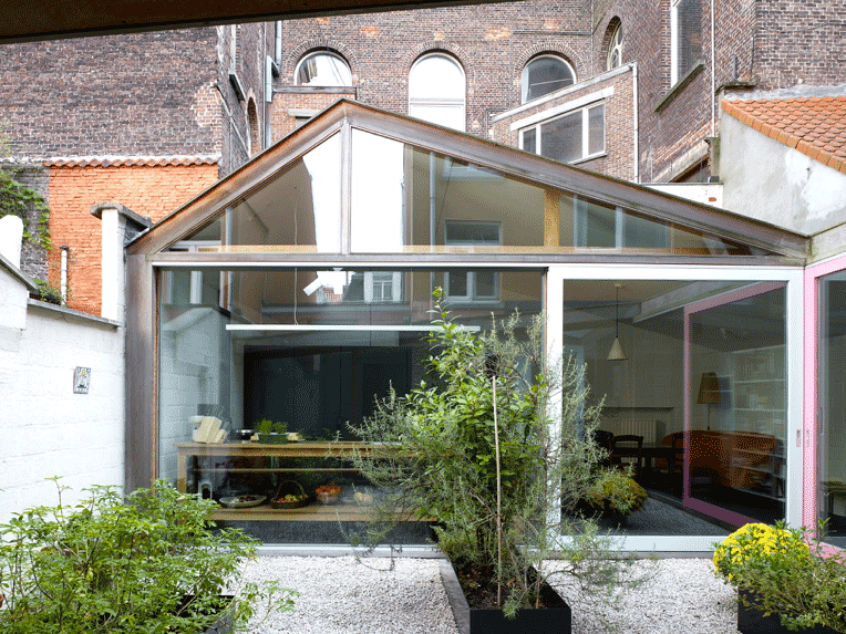 House J Ghent by noArchitecten is a small-scale extension project of a row house of original construction date in Ghent, Belgium. In 2001, as the existing kitchen had to be replaced and there was a need for an additional bathroom, a single-storey volume was implemented in the backyard. The intervention increased the usable surface area from previous surface area to new surface area.